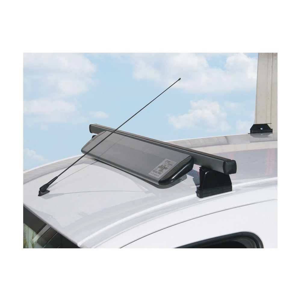 Spoiler anteriore frangivento in alluminio, dal design aerodinamico, adatto anche a messaggi pubblicitari. Lunghezza 120cm, Altezza 13cm. Adatto a bagagliere marca Prealpina modello Kappavans e Superomegavans con larghezza 124 e 142cm