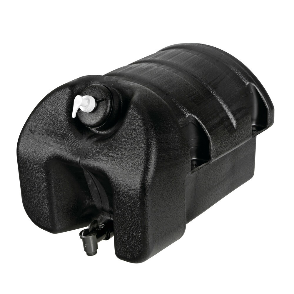 Serbatoio acqua in polietilene ad alta densità, in colore nero, capacità 30 Litri. Completo di porta sapone con dispenser (250 ml) e rubinetto in plastica. Staffe per il fissaggio da ordinarsi separatamente (art. 67035)