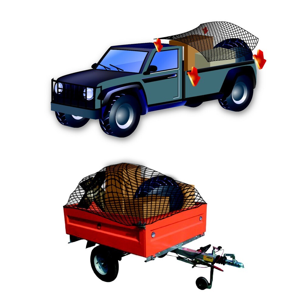 Rete fermacarichi - 250x140 cm - diametro 3 mm. Con perimetro elasticizzato. Per fermare il carico trasportato. Ideale per ceste, portapacchi, rimorchi, furgoni e camion