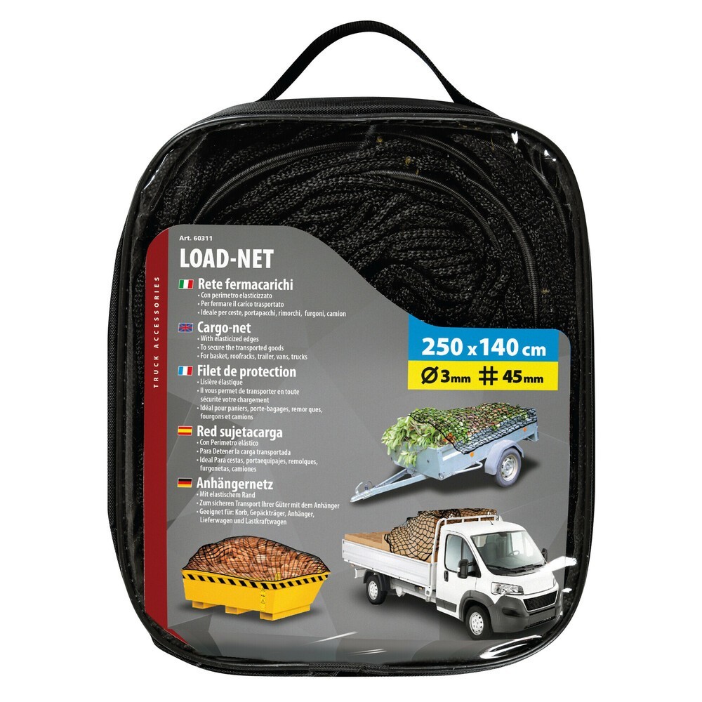 Rete elastica fermacarico 250x140cm per portapacchi camion furgoni rimorchi