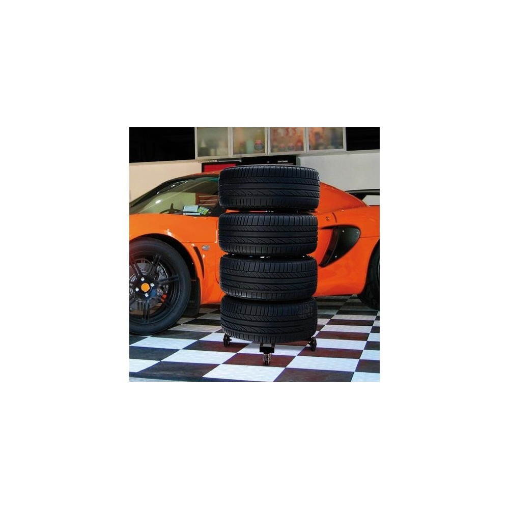 Carrello porta cerchi e pneumatici con supporto ad asta. Salvaspazio, ottima soluzione per lo stoccaggio stagionale. Evita la deformazione degli pneumatici. Per cerchi, pneumatici o ruote complete. Montaggio e smontaggio rapidi. Con freno ruota. Portata: 4 ruote complete da 18/19'' (max diametro 620 mm), larghezza max 285 mm, peso max 100 kg