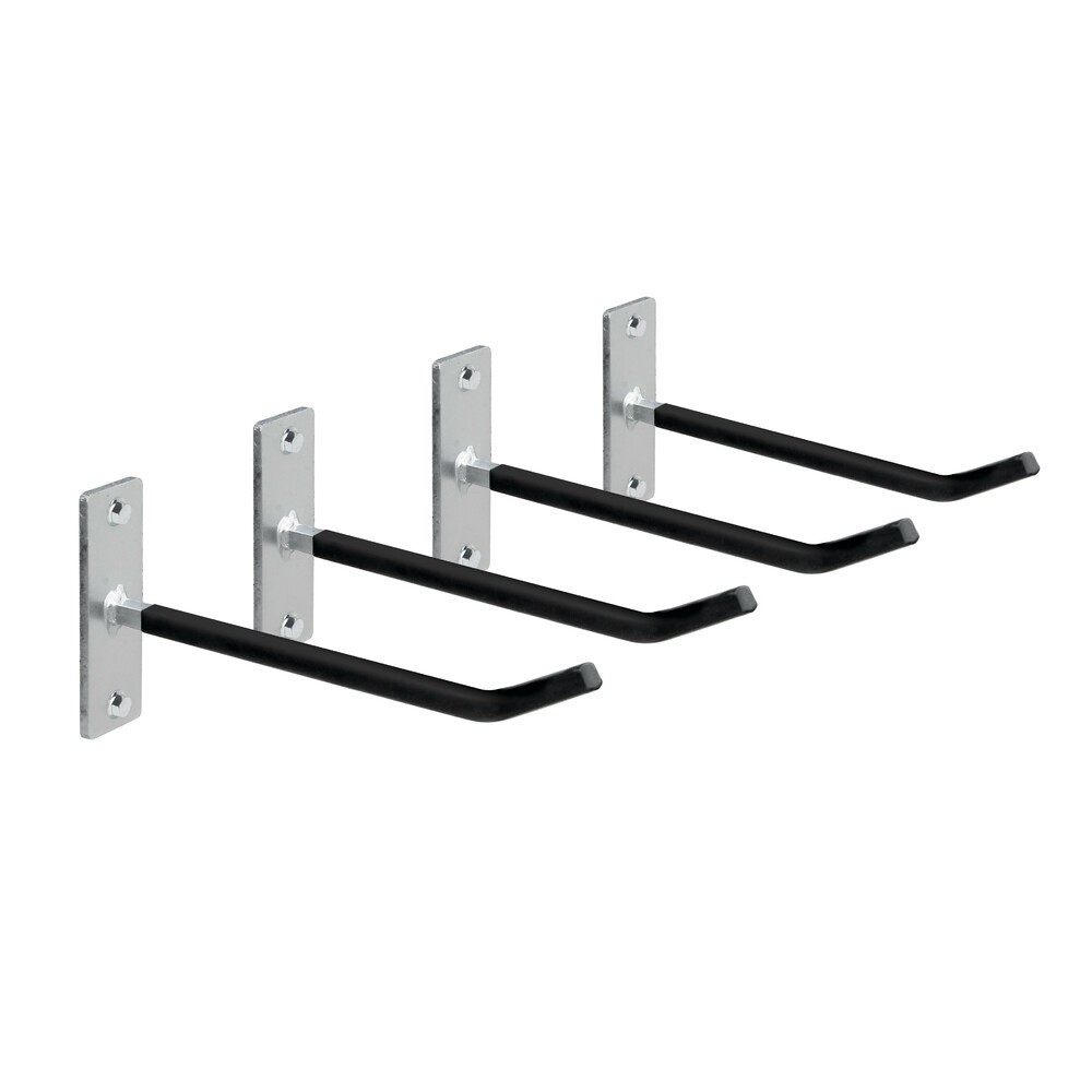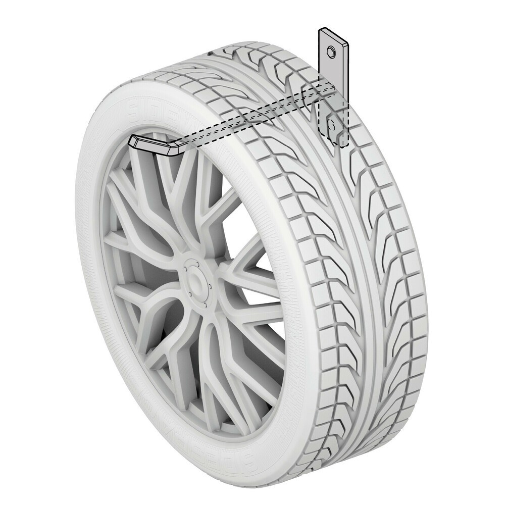 Ideali per il deposito di pneumatici + cerchioni, soli pneumatici o soli cerchioni. Facili da installare, compresi di kit di fissaggio a parete fai da te (8 viti e 8 tasselli per cemento armato). Realizzati in acciaio con rivestimento in pvc antiscivolo e antigraffio per proteggere il cerchione. Portata massima: 40 kg per gancio