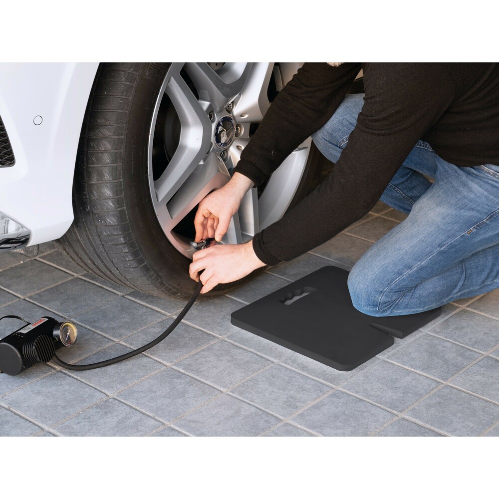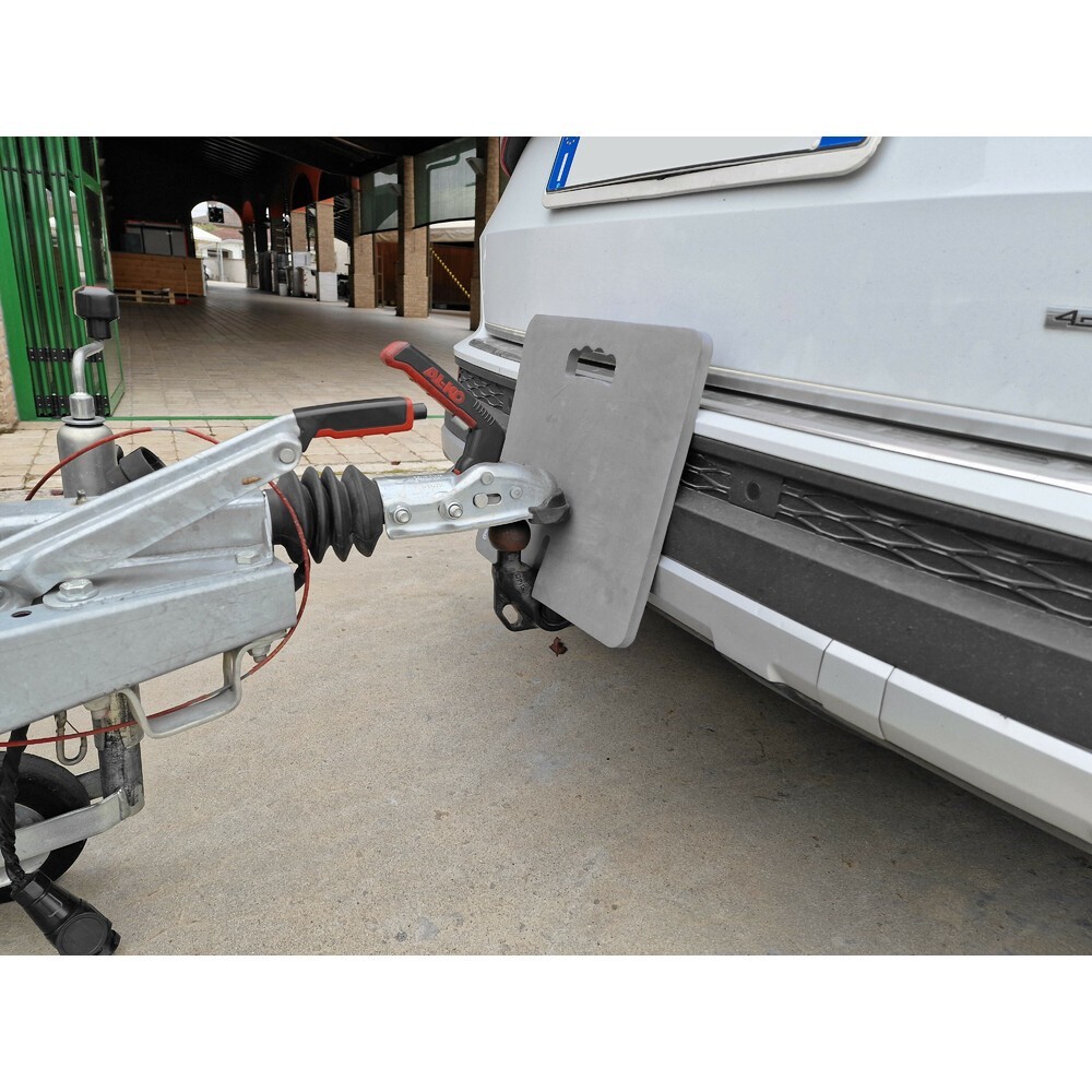 Protegge il paraurti posteriore durante le operazioni di aggancio-sgancio di rimorchi e caravan, evita che il giunto vada ad urtare il paraurti danneggiandolo al contatto. Utilizzabile anche come comodo tappetino quando è necessario inginocchiarsi per lavorare sotto il veicolo, per collegare le spine di rimorchi, per montaggio catene da neve, ecc.. Con comoda maniglia per il trasporto. Dimensione: 345x325x15 mm