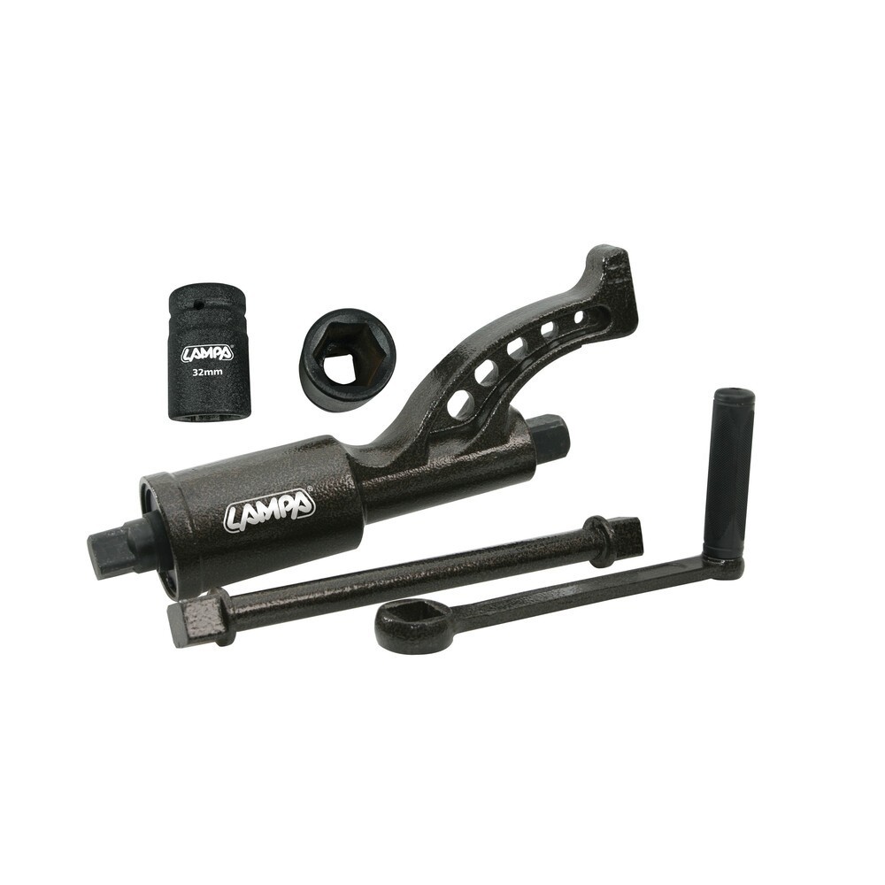 Moltiplicatore di forza per bulloni, ideale per allentare o stringere dadi/bulloni delle ruote di motrici, autotreni,mezzi agrigoli, autobus, rapporto 1:64 (1kg=64Kg) completo di : Manovela, 1 estensione 250mm, 1 bussola 32mm, 1 bussola da 33mm