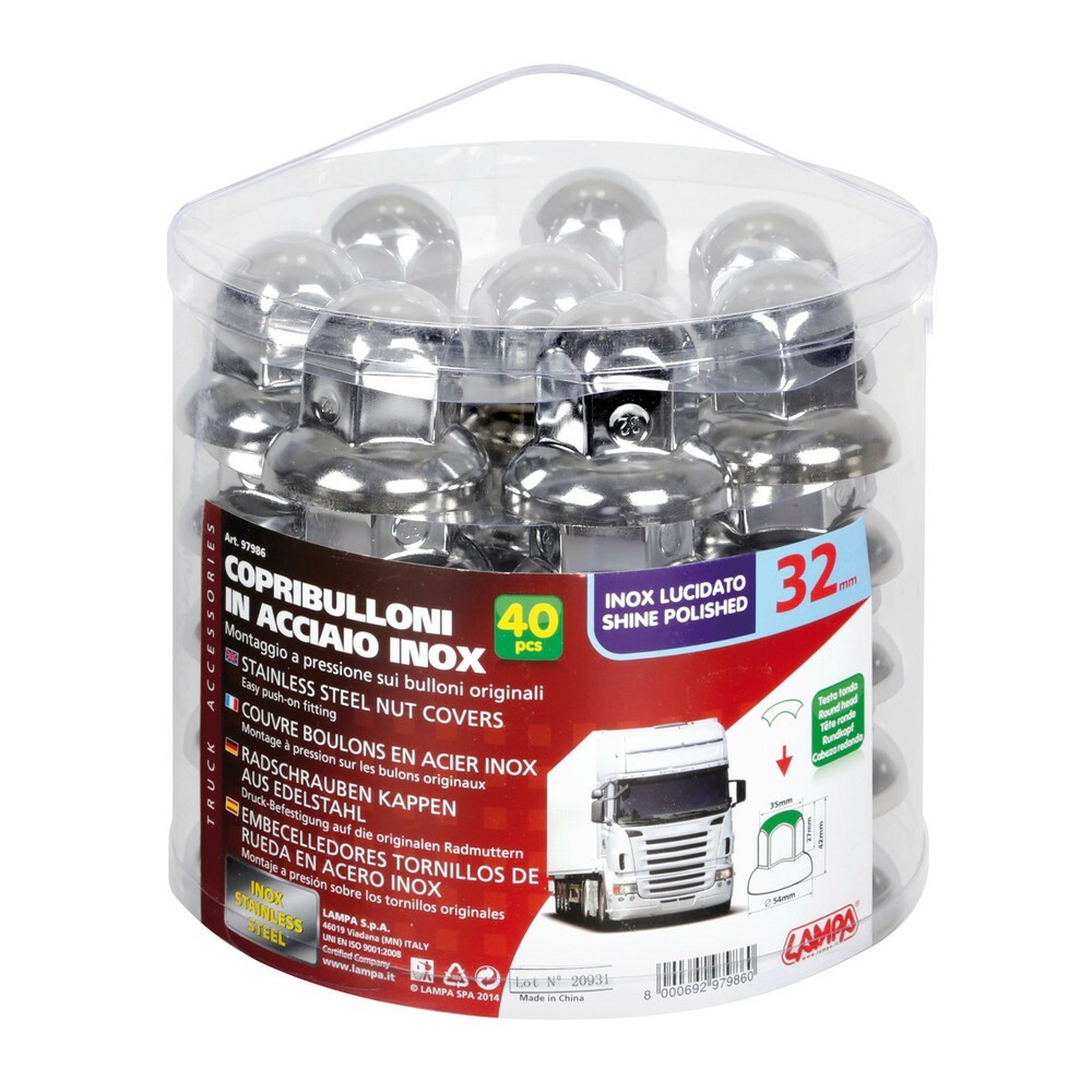 Set 10 copribulloni per camion 33mm in Acciaio Inox