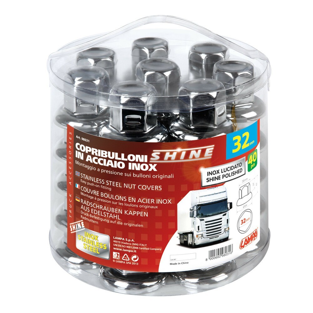 Set 40 copribulloni camion in acciaio inox lucidato diametro 32mm