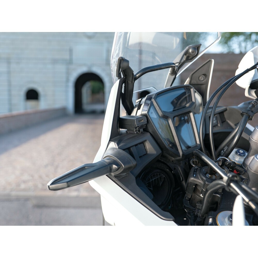 La presa USB per moto Trek X è progettata per adattarsi a una vasta gamma di diametri di manubri (da 22 a 32 mm) ed è facile da installare sia sulle carene che sul serbatoio, grazie alla sua flessibilità di fissaggio tramite viti o adesivo. Inoltre, con l'aggiunta della staffa inclusa, è possibile montarla sui supporti moto Optiline con sfera dal diametro di 19mm, rendendola adatta anche a spazi limitati. Doppia presa USB (USB-A con tecnologia Qualcomm 3.0 max 18W e USB-C con tecnologia Power Delivery max 30W) per moto e scooter con connessione diretta alla batteria, dotata di tecnologia di ricarica rapida e resistente all'acqua IPX6. Questa soluzione permette di ricaricare i tuoi dispositivi durante il viaggio e di collegare il mantenitore di carica al connettore SAE già collegato alla batteria durante i periodi di inattività tramite un cavo da 180cm dotato di connettori a forcella. Dotato di un sistema di protezione completo contro corto circuito, surriscaldamento, sovraccarico e sovratensione per un utilizzo sicuro nel tempo.
