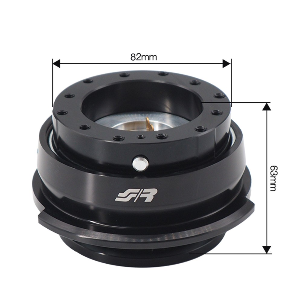 In alluminio nero anodizzato con anima realizzata a cnc. Il sistema di fissaggio doppia foratura consente l'installazione su volanti con tutti i tipi di foratura. Dotato di cavi e contatti per il clacson. Dimensioni: 82x63mm