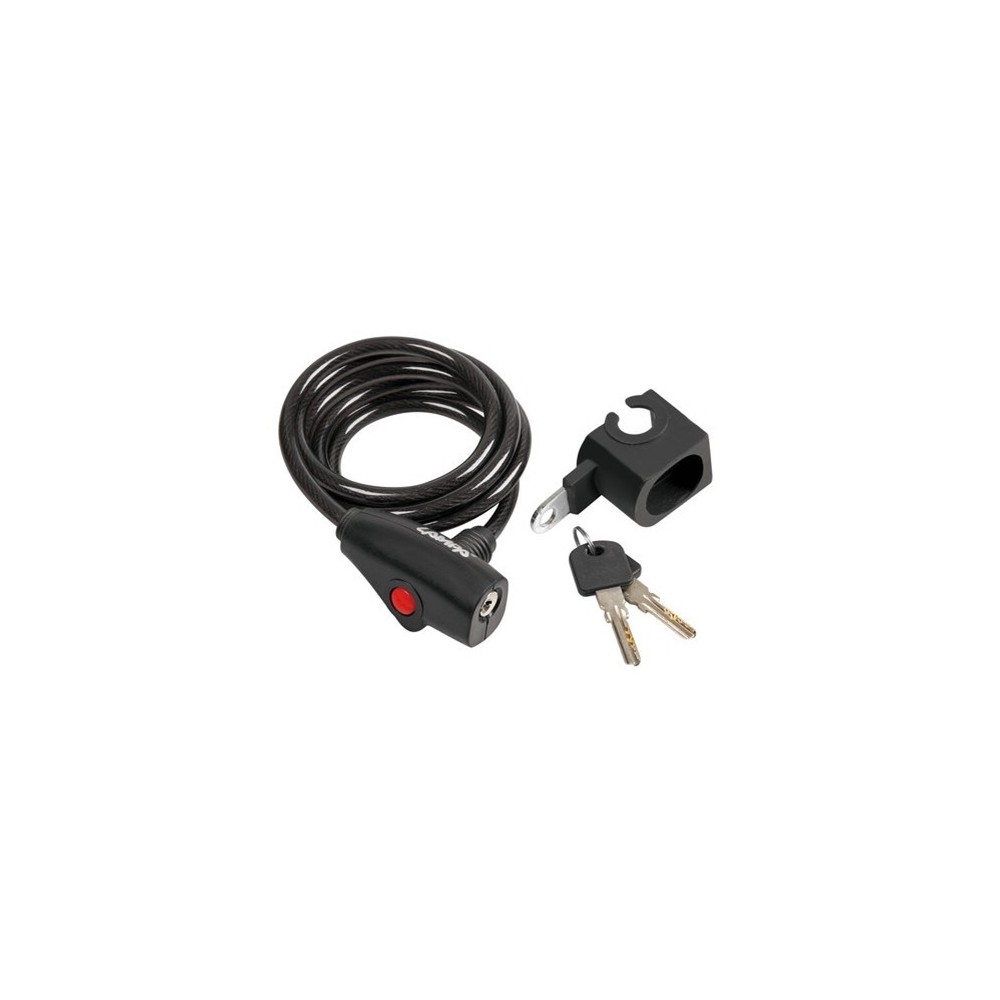 Cavo antifurto in acciaio a spirale diametro 8 mm, lunghezza 160 cm. Completo di staffa. Plastificazione antigraffio. Spirale autoavvolgente. Doppia chiave