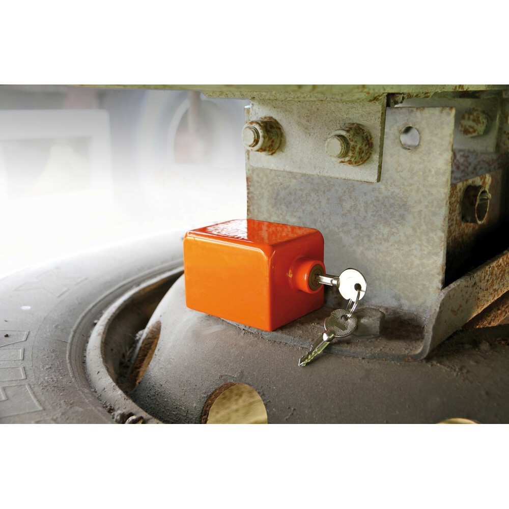 Previene il furto della ruota di scorta. Acciaio zincato e verniciato. Doppia chiave. Con copri serratura.