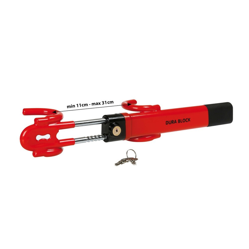 Alta sicurezza. Le due doppie zanne bloccano il volante e non ne permettono la rimozione nemmeno tagliando il volante in piu' sezioni. Installazione e rimozione ultra rapida, con meccanismo di blocco automatico. Estremamente compatta, puo' essere riposta sotto al sedile. Struttura in acciaio completamente rivestita di morbida plastica per prevenire graffi al contatto con il volante e gli interni auto. Universale e idonea per tutti i volanti con e senza airbag. 2 chiavi in dotazione