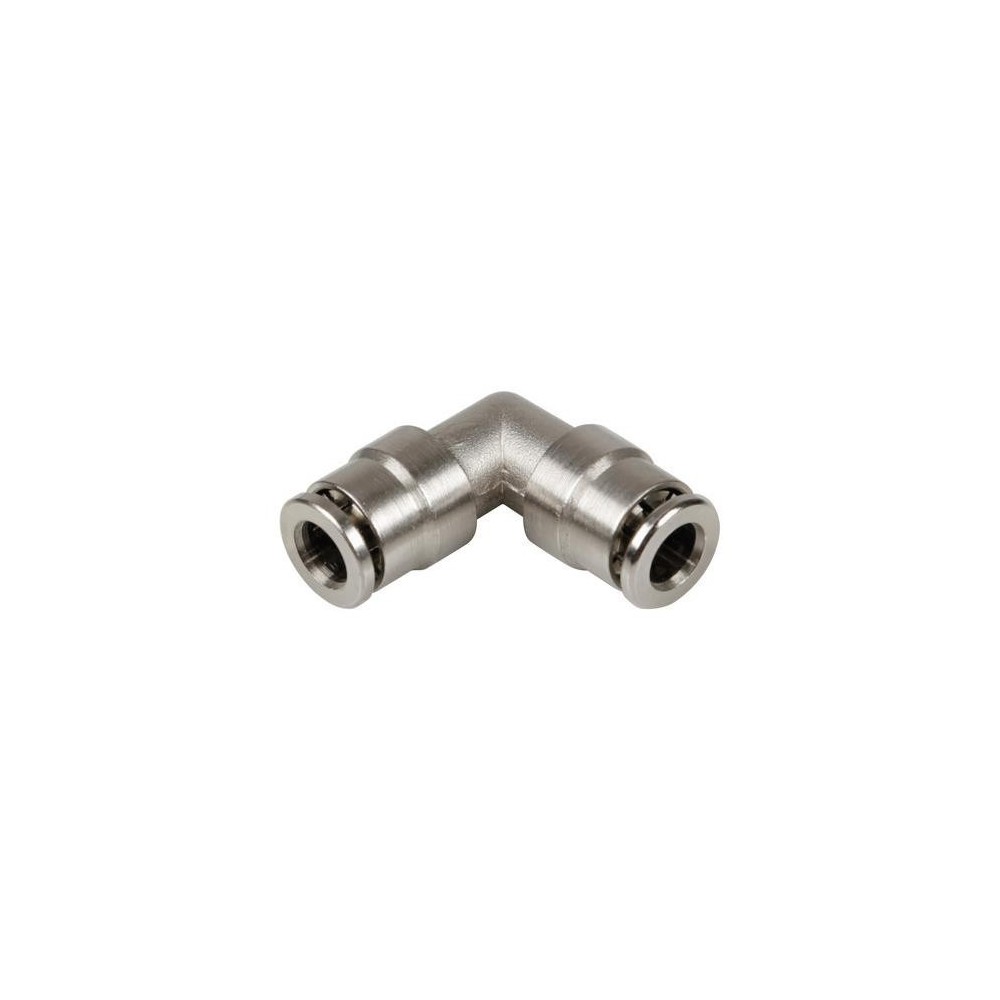 Raccordo rapido 90 gradi in metallo (Ottone Nichelato), per tubi aria diametro 6mm. Max 2,5 bar kg/cm2