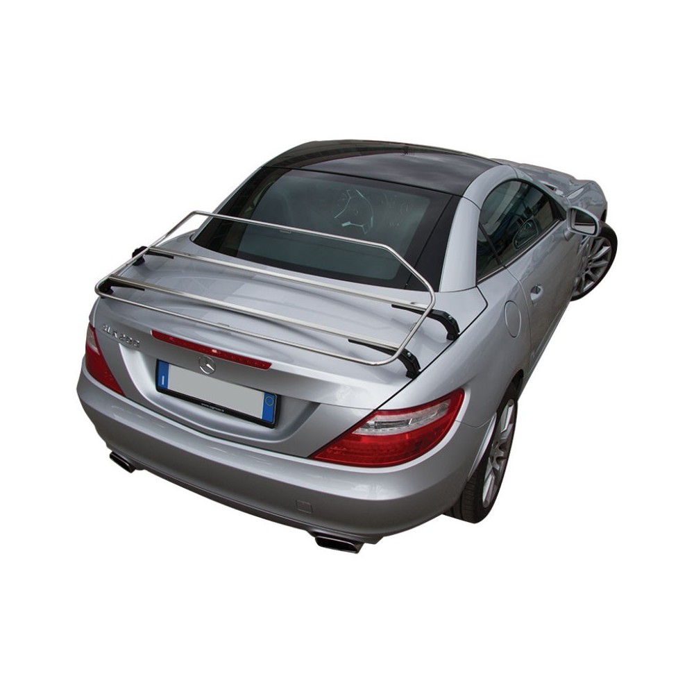 Portabagagli posteriori per vetture spider e coupè realizzato in acciaio inox lucidato con piedi regolabili in larghezza. Permette di trasportare in sicurezza le valigie che non trovano posto nel vano bagagli. Dimensioni: 97x45cm. Peso: 4.5kg. Disponibile come optional il portasci cod. 6801910 (richiedi info)