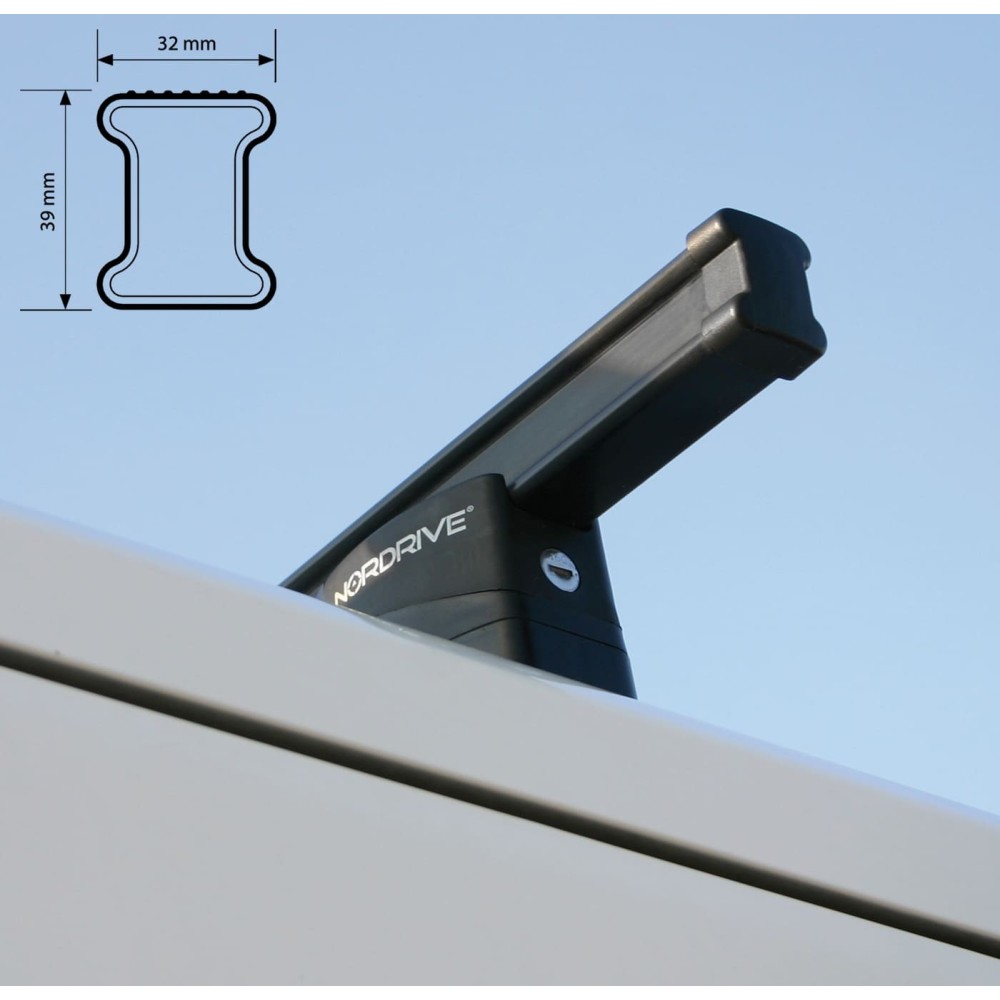 Compatibilita': Volkswagen Caddy V Maxi (senza corrimano) dal 01/2021>. Kit 4 barre portatutto lunghezza 150cm + attacchi specifici con chiave di sicurezza marca Nordrive per veicoli commerciali con predisposizione, in acciaio elettrozincato con guaina di rivestimento in PVC, le uniche omologate per portaggio max 200Kg.