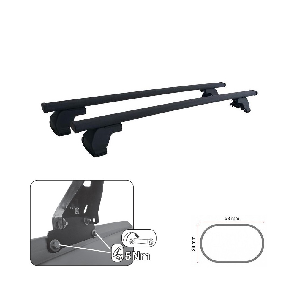 Compatibilita': Honda CR-V 5 porte (con profili / railing) immatricolata dal 2018 al 2022. Barre portatutto G3 modello Pacific in acciaio. Soluzione di carico per vettura con tetto senza corrimano. Fissaggio semplice in 5 minuti. Lunghezza barre: 110cm. Massimo carico: 50kg. NOTE: il kit viene fornito con una finta serratura che puo' essere sostituita da una vera, cod. 69011, da acquistare a parte.