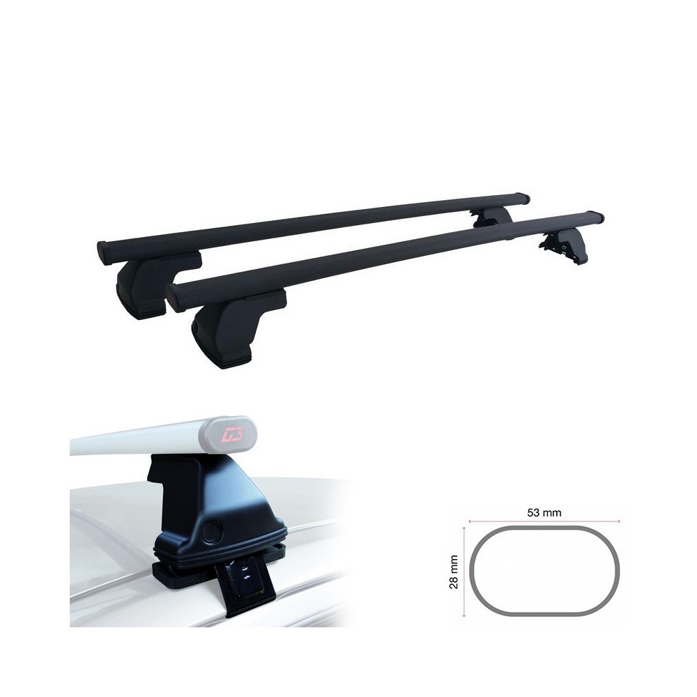 Compatibilita': Renault Megane (III) Coupe' 3 porte immatricolata dal 2008 al 2016. Barre portatutto G3 modello Pacific in acciaio. Soluzione di carico per vettura con tetto senza corrimano. Fissaggio semplice in 5 minuti. Lunghezza barre: 130cm. Massimo carico: 50kg. NOTE: il kit viene fornito con una finta serratura che puo' essere sostituita da una vera, cod. 69011, da acquistare a parte.