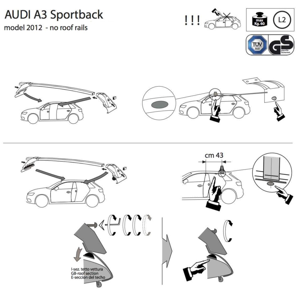 Kit barre portatutto LP43 per Audi A3 Sportback 5p 2012-2020
