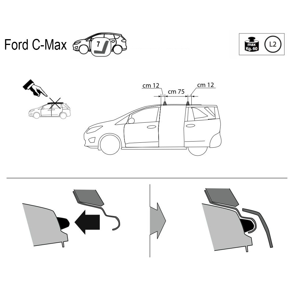 Kit barre portatutto per corrimano Ford C-Max 7 posti dal 2010 LP59