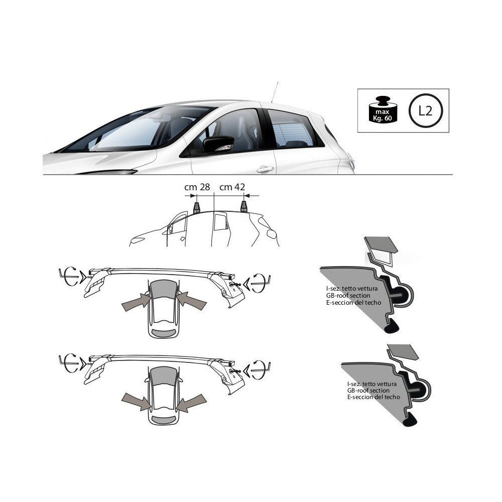 Kit barre portatutto LP43 per Renault Zoe 5 porte dal 2014
