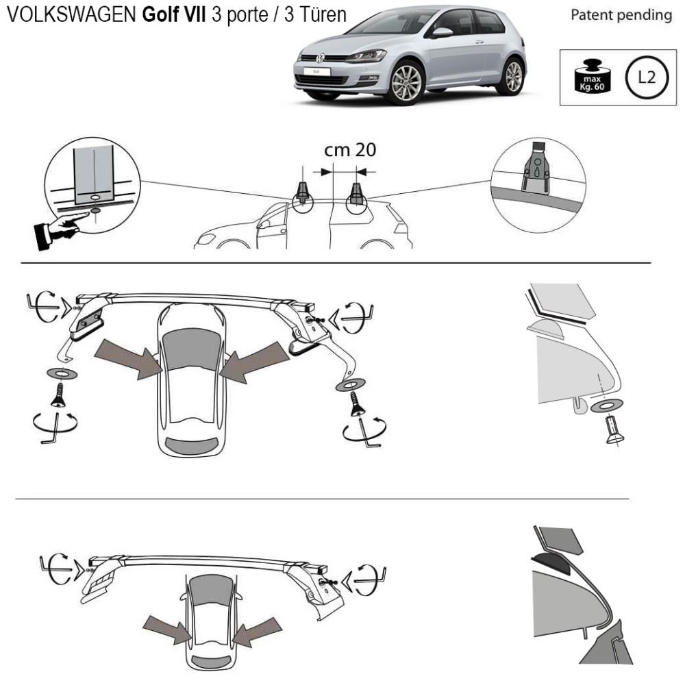 Kit barre portatutto LP51 per VW Golf VII 3p 2013-2019