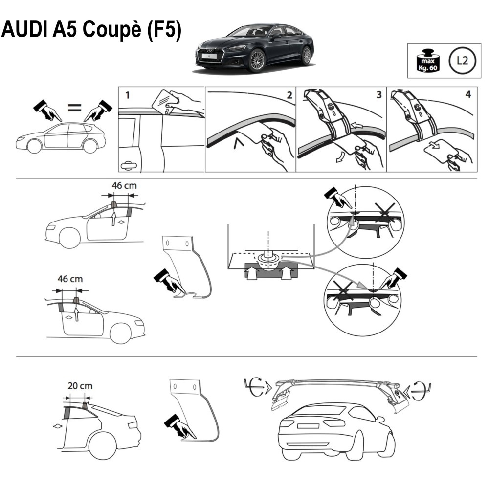Kit barre portatutto LP43 per Audi A5 Coupè 2016-2024
