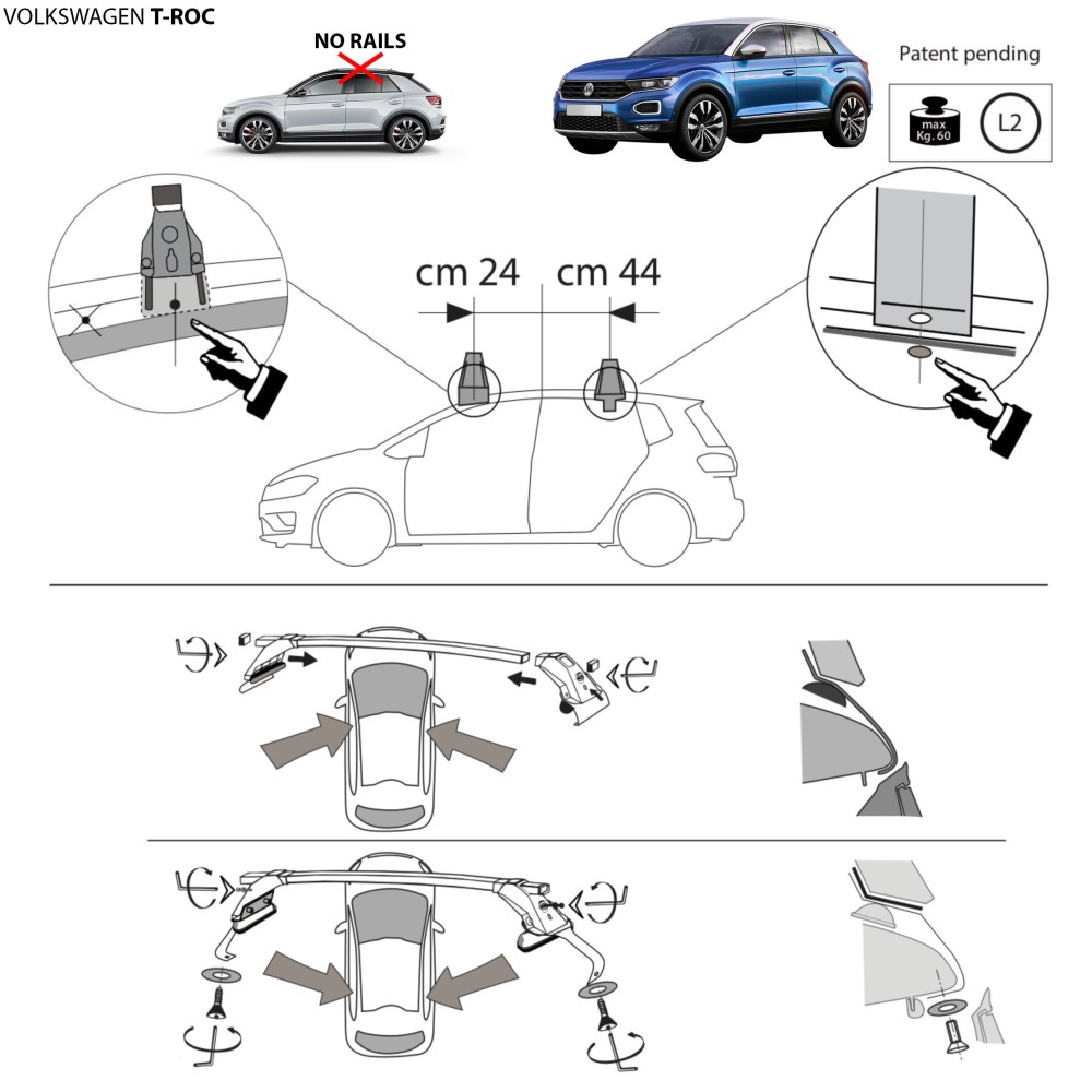 Kit barre portatutto LP59 per corrimano VW T-Roc 2017-2025