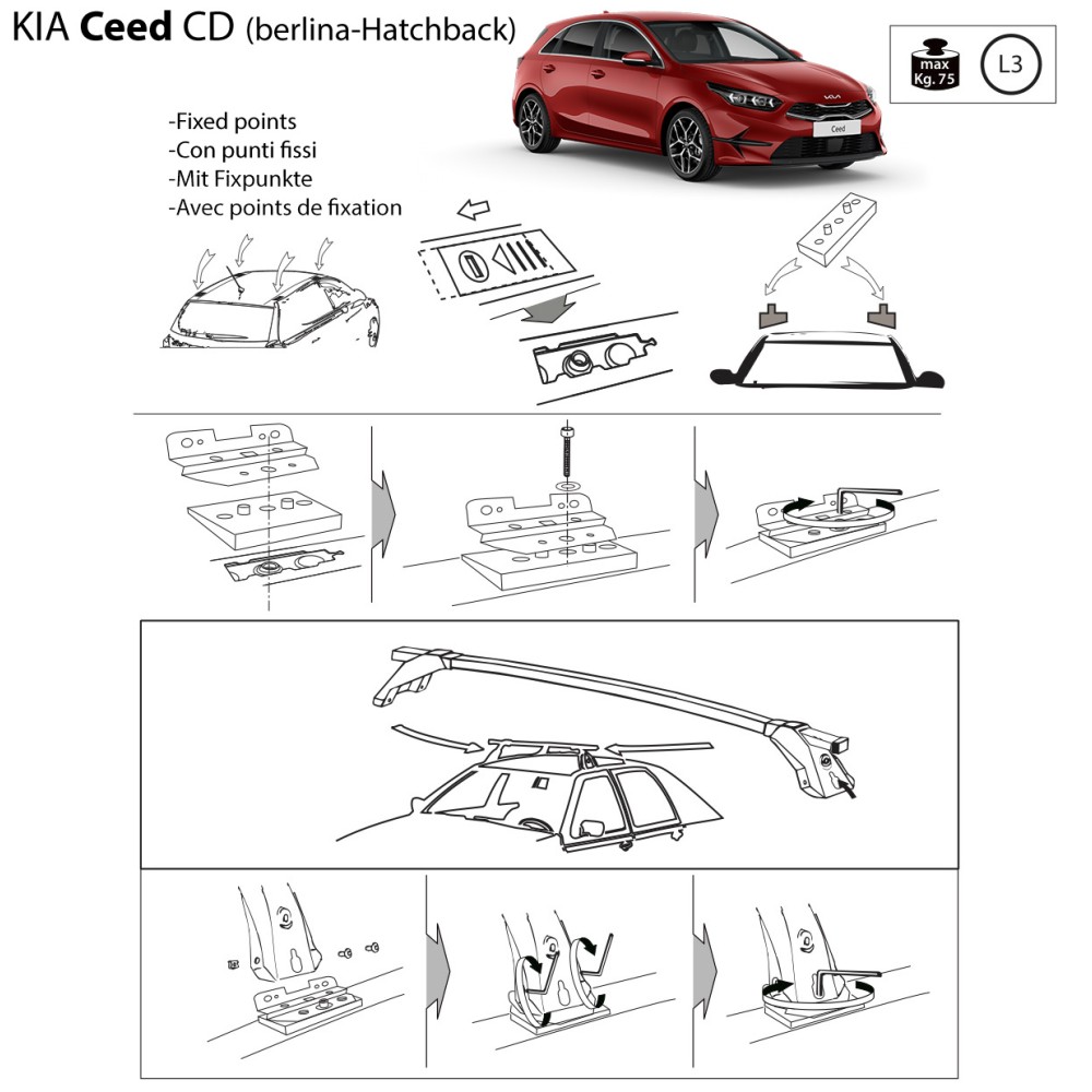 Kit barre portatutto LP65 per Kia Ceed 5p c/fori filettati dal 2018