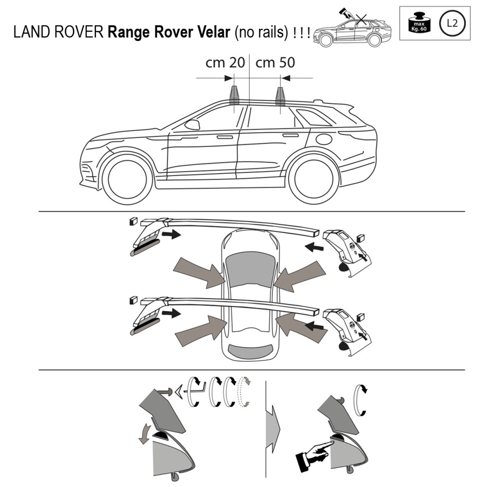 Kit barre portatutto LP49 per Land Rover Velar senza corrimano dal 2017