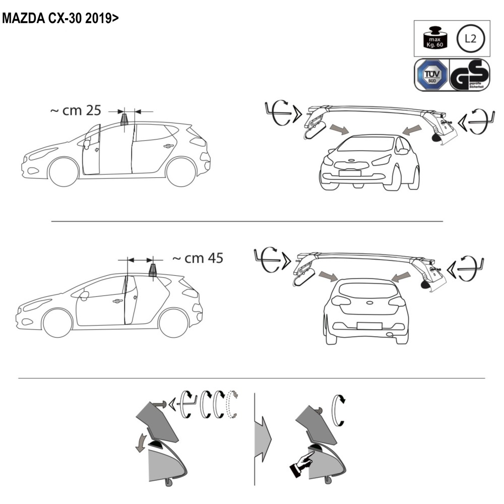 Kit barre portatutto LP49 per Mazda CX-30 5 porte dal 2019