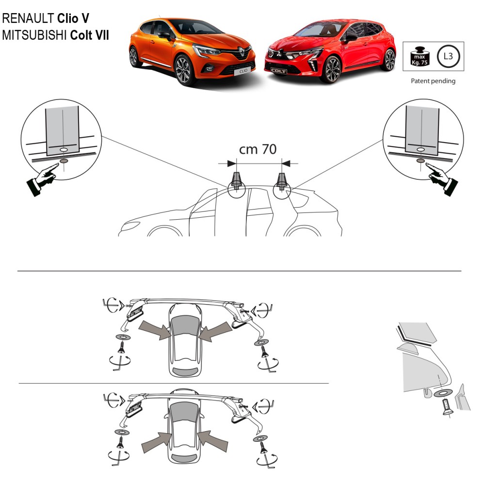 Kit barre portatutto LP43 per Renault Clio V 5 porte dal 2019
