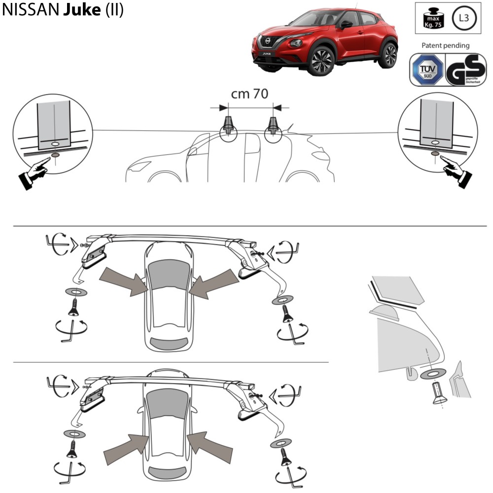 Kit barre portatutto LP49 per Nissan Juke 5 porte dal 2019
