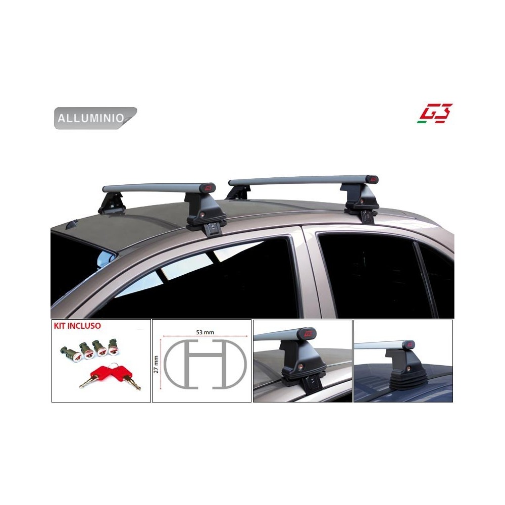 Compatibilita': Jeep Wrangler JL 3 porte immatricolata dal 2018 - Jeep Wrangler JL Unlimited 5 porte immatricolata dal 2018. Barre portatutto G3 modello Pacific in alluminio. Soluzione di carico per vettura con tetto senza corrimano. Fissaggio semplice in 5 minuti. Lunghezza barre: 147cm. Massimo carico: 50kg. NOTE: kit completo di serratura a chiave