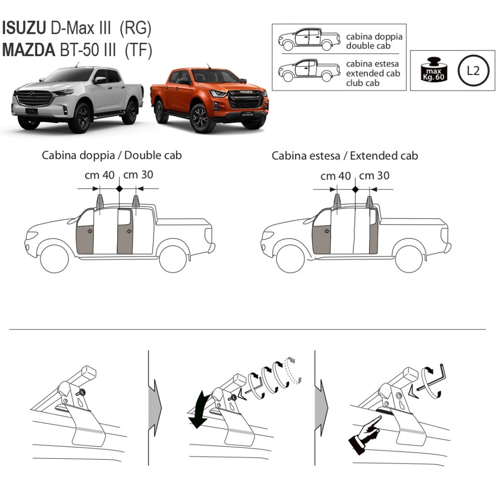 Kit barre portatutto LP49 per Isuzu D-Max III dal 2020