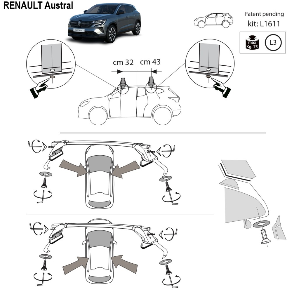 Kit barre portatutto LP43 per Renault Austral senza railing dal 2022