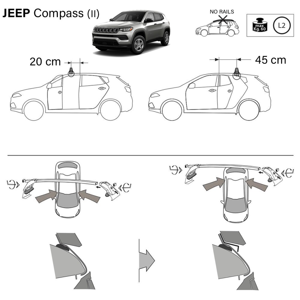 Kit barre portatutto LP49 per Jeep Compass senza corrimano dal 2017