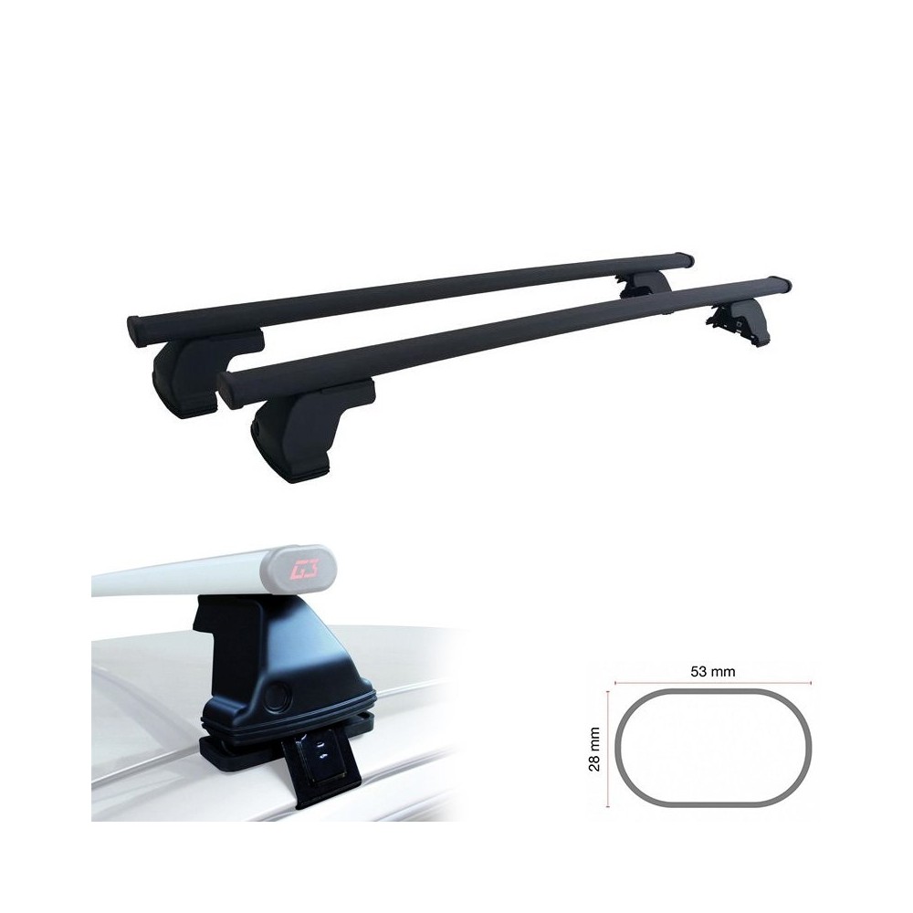 Compatibilita': Volkswagen Taigo (senza corrimano) immatricolata dal 2021>. Barre portatutto G3 modello Pacific in acciaio. Soluzione di carico per vettura con tetto senza corrimano. Fissaggio semplice in 5 minuti. Lunghezza barre: 130cm. Massimo carico: 50kg. NOTE: il kit viene fornito con una finta serratura che puo' essere sostituita da una vera, cod. 69011, da acquistare a parte.