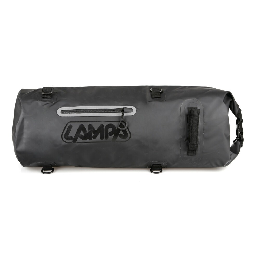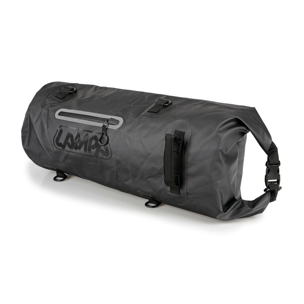 Sacca impermeabile con sistema di chiusura roll top per garantirne l'impermeabilità. Realizzata in PVC 500D Tarpaulin senza cuciture con saldature ad alta frequenza. Maniglia per trasporto a mano e cinghia tracolla. Dotata di attacchi per il fissaggio tramite cinghie alla moto (non incluse). Comoda zip frontale con bordatura riflettente per accedere a una piccola tasca interna. Lunghezza 65cm x Diametro 25cm