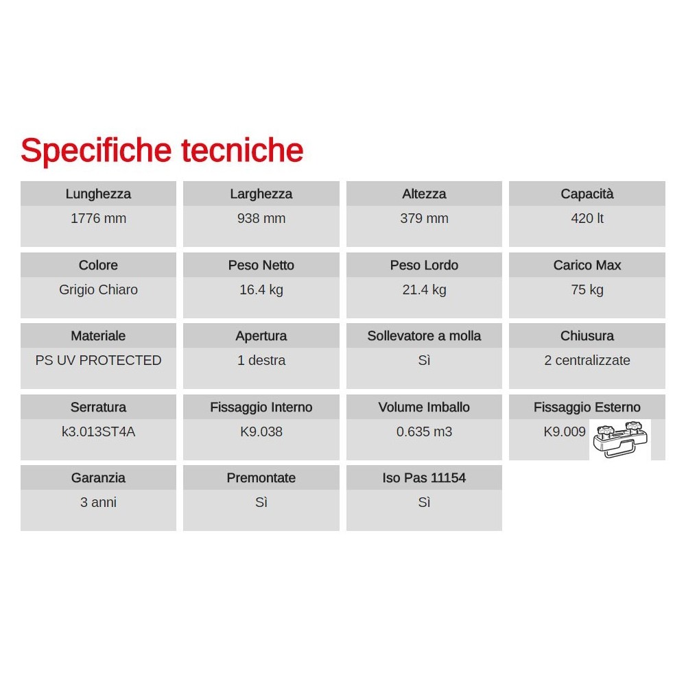 Box portatutto frutto della capacita' innovativa dei tecnici G3 con il pratico sistema di preforatura che contraddistingue la gamma di box tetto. E' sufficiente una penna a sfera! Semplice e veloce, permette al cliente di non dover maneggiare strumenti pericolosi. Il risultato e' ottimale, assolutamente migliore di qualsiasi altro presente in commercio: il sistema di preforatura migliora la precisione del montaggio e contribuisce ad aumentare la qualita' del box G3. Modello : SPARK ECO 520, per tutte le caratteristiche e dimensioni vedi immagine allegata.
