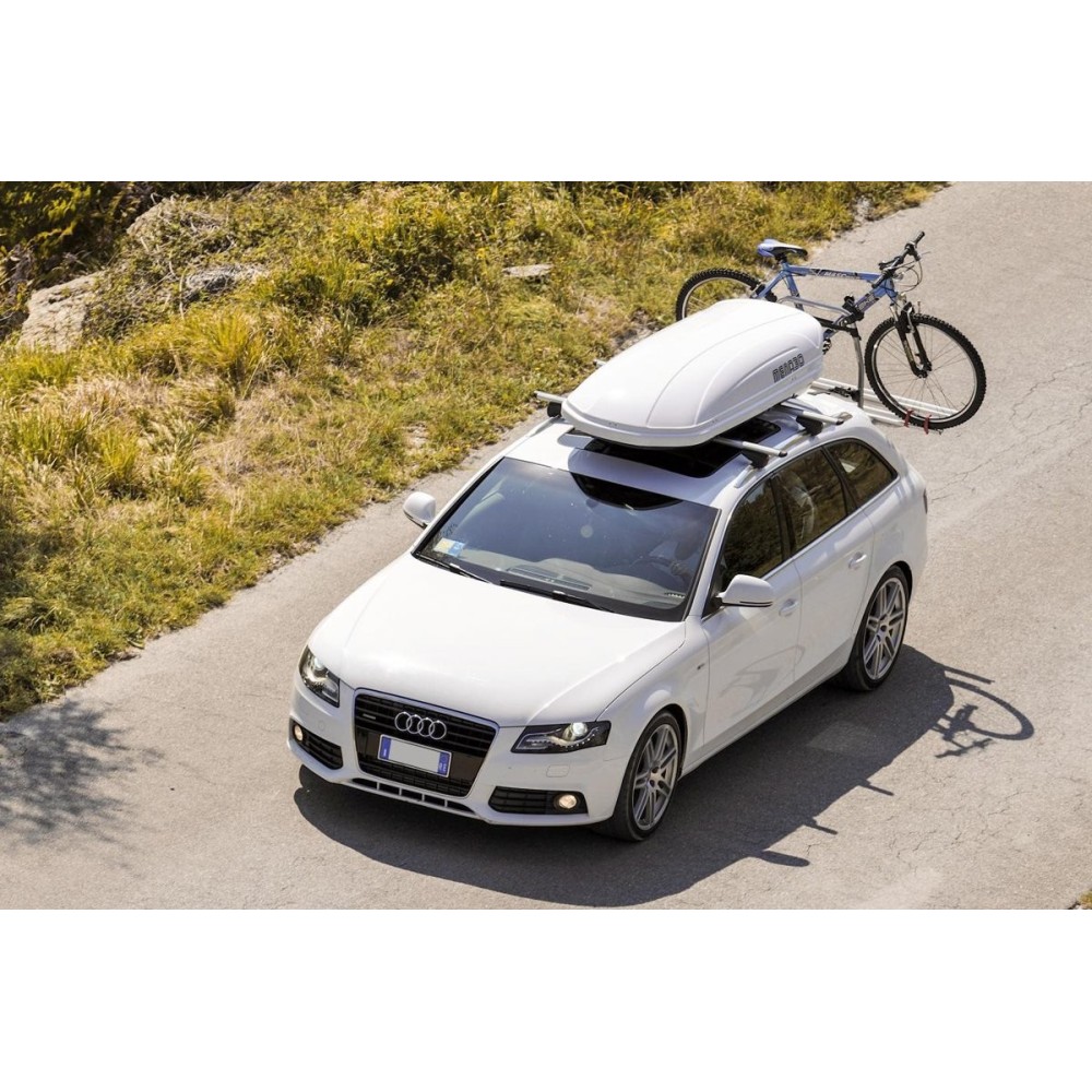 Baule da tetto funzionale in ABS per qualsiasi esigenza dal montaggio rapido e sicuro con quick fixing system. Dotato di serratura con chiusura a doppio scatto brevettato. Caratterizzato da una superficie liscia e lucida. Dimensioni esterne (LxHxW) 1950x360x790mm. Dimensioni interne (LxHxW) 1900x338x710mm. Portata max. 75Kg. Idoneo a barre con sez. max (LxH) 60x35mm (max. 80x35mm con optional codice 000124600000) e su barre con canalina a ''T''