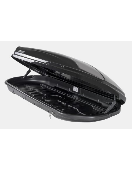 Baule da tetto funzionale in ABS per qualsiasi esigenza dal montaggio rapido e sicuro con quick fixing system. Dotato di serratura con chiusura a doppio scatto brevettato. Caratterizzato da una superficie liscia e lucida. Dimensioni esterne (LxHxW) 1950x360x790mm. Dimensioni interne (LxHxW) 1900x338x710mm. Portata max. 75Kg. Idoneo a barre con sez. max (LxH) 60x35mm (max. 80x35mm con optional codice 000124600000) e su barre con canalina a ''T''