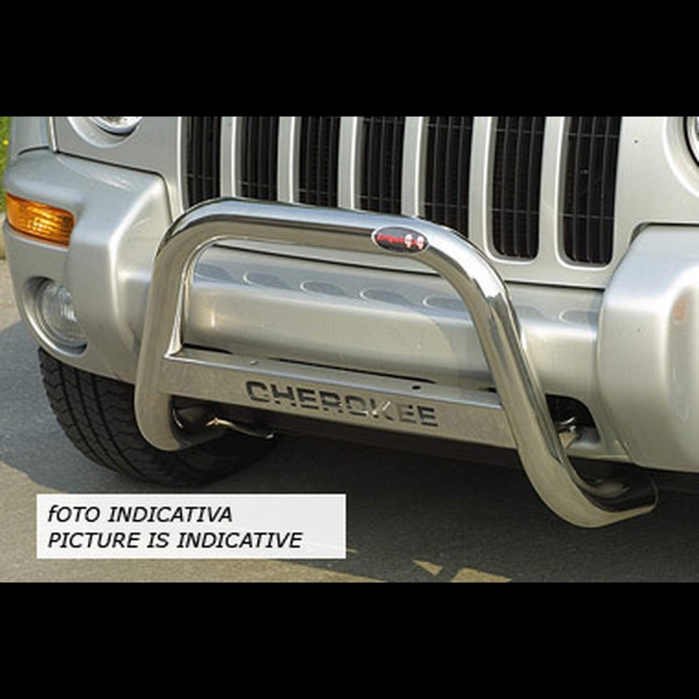 Compatibilita': Jeep Cherokee immatricolata dal 1998 al 2000. Bull Bar anteriore in acciaio inox lucido diametro 60mm. Note: traversa con scritta modello auto