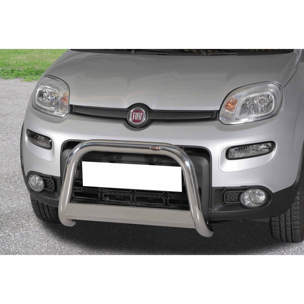 Compatibilita': Fiat Panda / Panda 4x4 immatricolata dal 2013 ( NON compatibile con versione CROSS ). Protezione anteriore in acciaio inox diametro 70mm con traversa. Disponibile anche in versione INOX BLACK-EDITION. Fornito con kit di montaggio e certificato di omologazione europeo specifico (CE). ATTENZIONE: Non sempre compatibile con sensori di parcheggio e sistema anti-collisione