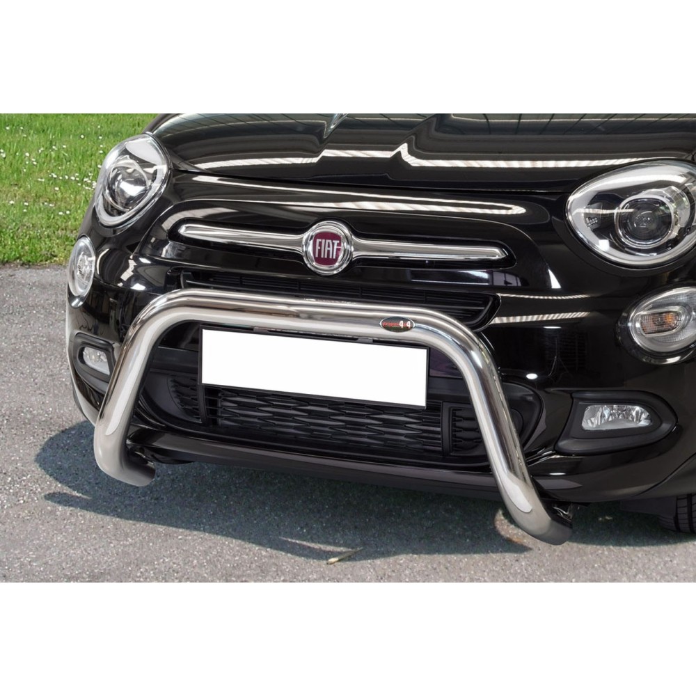 Compatibilita': Fiat 500X immatricolata dal 2015. Bull Bar anteriore in acciaio inox lucido diametro 70mm. Omologazione europea: SI. Fornito con kit di montaggio e certificato di omologazione europeo specifico (CE). ATTENZIONE: Non sempre compatibile con sensori di parcheggio e sistema anti-collisione.