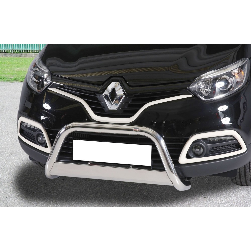 Compatibilita': Renault Capture immatricolata dal 2013. Bull Bar anteriore in acciaio inox lucido, diametro 60mm, con traversa. Omologazione europea: SI