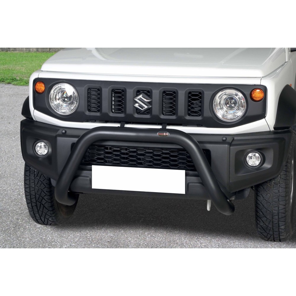 Compatibilita': Suzuki Jimny immatricolata dal 2018. Bull Bar anteriore in acciaio inox Black Edition diametro 70mm. Omologazione europea: SI. Fornito con kit di montaggio e certificato di omologazione europeo specifico (CE). ATTENZIONE: Non sempre compatibile con sensori di parcheggio e sistema anti-collisione.