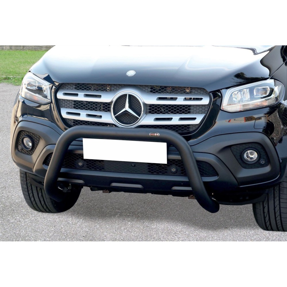 Compatibilita': Mercedes Classe X doppia cabina immatricolata dal 2017. Bull Bar anteriore in acciaio inox Black Edition diametro 70mm. Omologazione europea: SI. Fornito con kit di montaggio e certificato di omologazione europeo specifico (CE). ATTENZIONE: Non sempre compatibile con sensori di parcheggio e sistema anti-collisione.