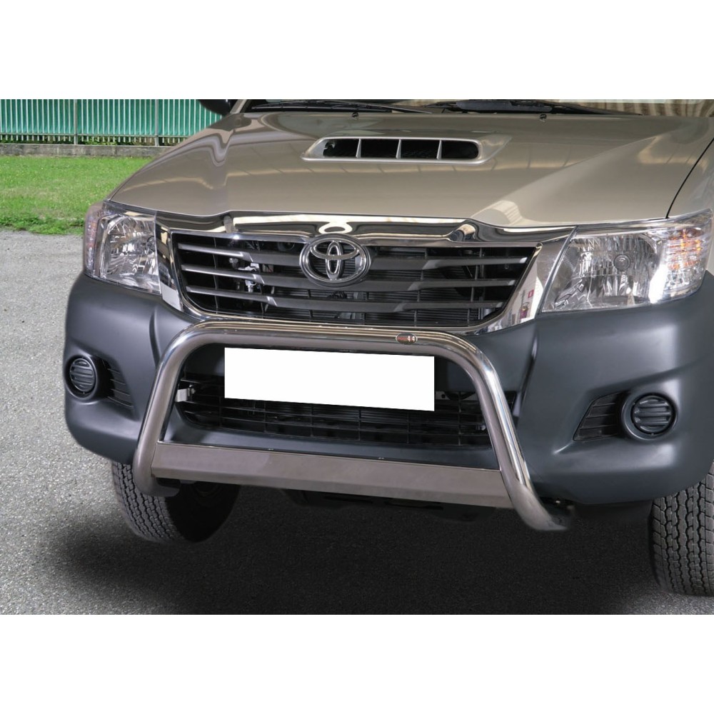 Compatibilita': Toyota Hilux MY 2012 immatricolata dal 2011 al 2015. Bull Bar anteriore in acciaio inox lucido, diametro 60mm, con traversa. Omologazione Europea: SI