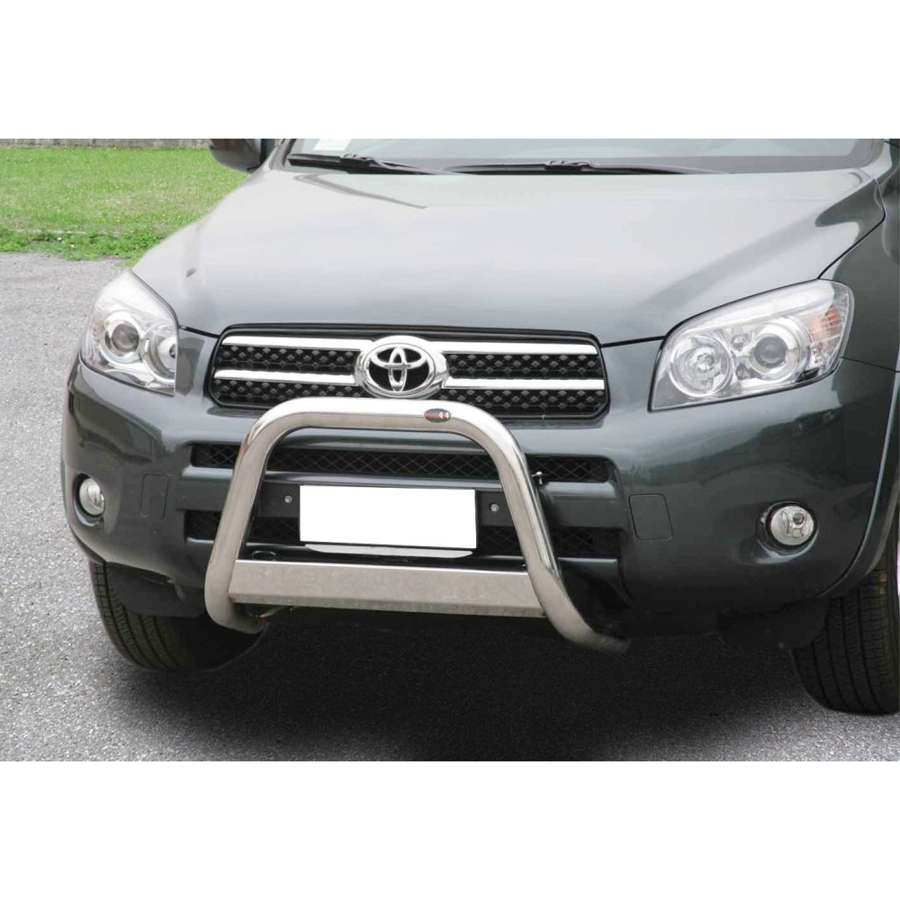 Compatibilita': Toyota Rav4 immatricolata dal 2006 al 2008. Bull Bar anteriore in acciaio inox lucido, diametro 60mm, con traversa. Omologazione Europea: SI