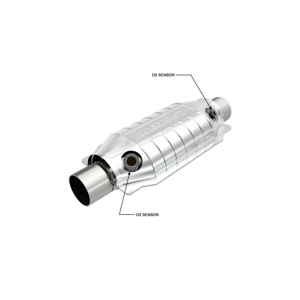 Convertitore catalitico universale 400 celle Magnaflow in acciaio inossidabile per veicoli euro 2/3/4 diesel e benzina, studiato per resistere alle temperature dei gas di scarico, creato da una singola sezione senza saldature con all'interno il monolitico ceramico. Il catalizzatore 400 celle e' paragonato per caratteristiche e prestazioni al ricambio originale. Il catalizzatore universale deve essere scelto in base alla potenza della vettura e allo spazio a disposizione nella vettura. Misure: diametro (interno) entrata/uscita 5,7cm (2.25 in); Lunghezza 40,6cm; Larghezza 14cm; Due predisposizioni sonda lambda prima e dopo il catalizzatore; Massima potenza veicolo: 2.5cc / 220cv.