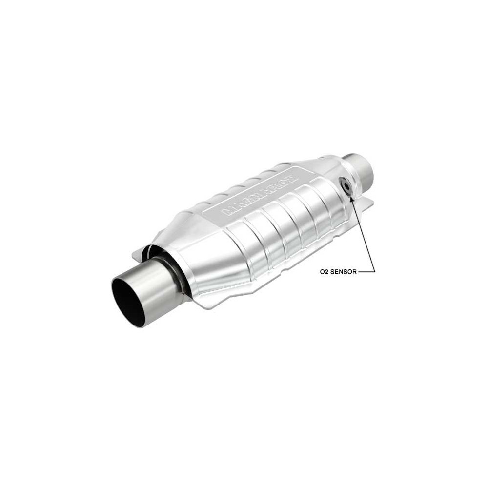 Convertitore catalitico universale 400 celle Magnaflow in acciaio inossidabile per veicoli euro 2/3/4 diesel e benzina, studiato per resistere alle temperature dei gas di scarico, creato da una singola sezione senza saldature con all'interno il monolitico ceramico. Il catalizzatore 400 celle e' paragonato per caratteristiche e prestazioni al ricambio originale. Il catalizzatore universale deve essere scelto in base alla potenza della vettura e allo spazio a disposizione nella vettura. Misure: diametro (interno) entrata/uscita 6,4cm (2.5 in); Lunghezza 40,6cm; Larghezza 14cm; Predisposizione sonda lambda dopo il catalizzatore; Massima potenza veicolo: 2.5cc / 220cv.